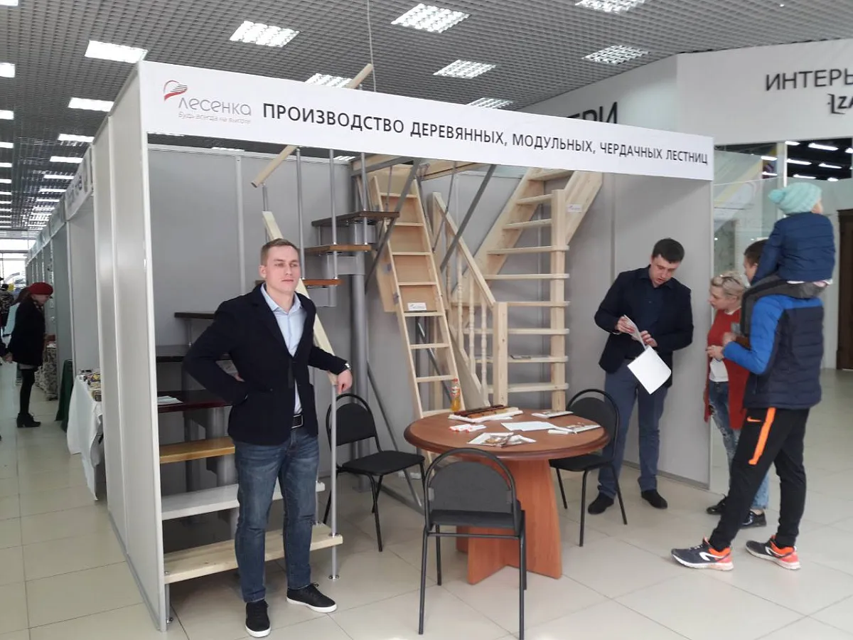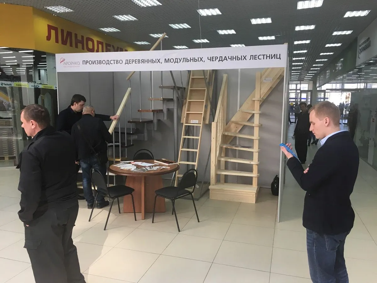 Стенд нашей компании был также представлен на данном мероприятии образцами деревянных и модульных лестниц. Наш стенд вызывал неподдельный интерес у посетителей выставки, причем узнать что-то новое для себя могли как производители, так и обыкновенные жители города.