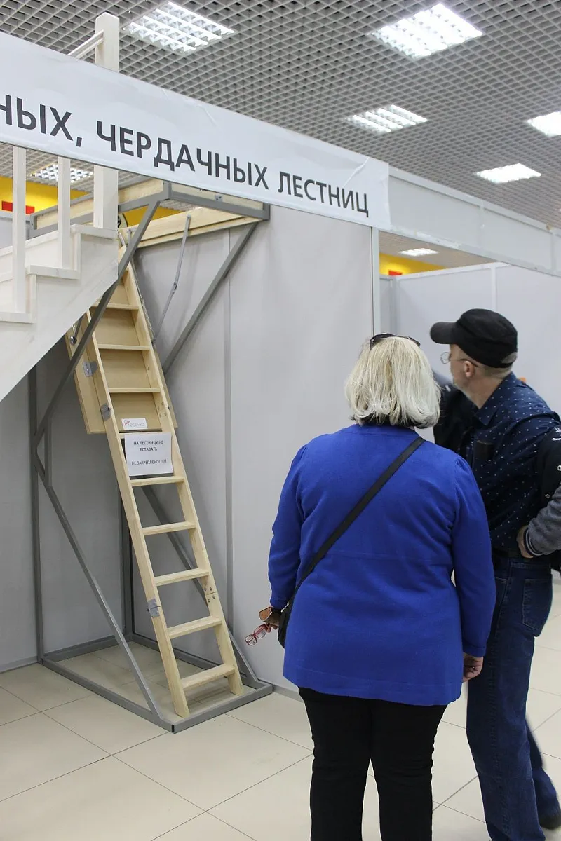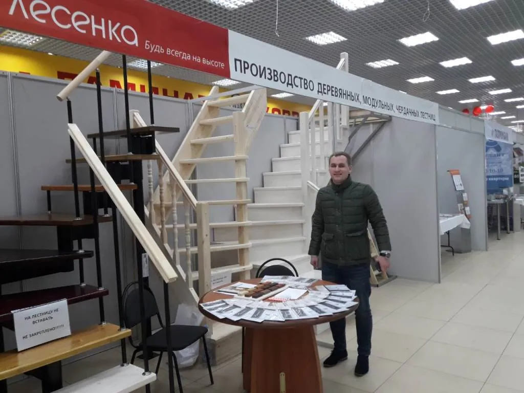 14-15-16 апреля в Твери во второй раз прошла выставка «Ярмарка Недвижимости. Строительство. Коттеджи. Дачи». В эти дни на одной площадке в ТК «Тандем» собрались ведущие компании в сфере строительства. Компания «Лесенка» уже по традиции была представлена на стенде четырьмя образцами лестниц нашего производства: ЛЕС-91, ЛЕС-09, модульной лестницей с поворотом 90 градусов и чердачной лестницей.